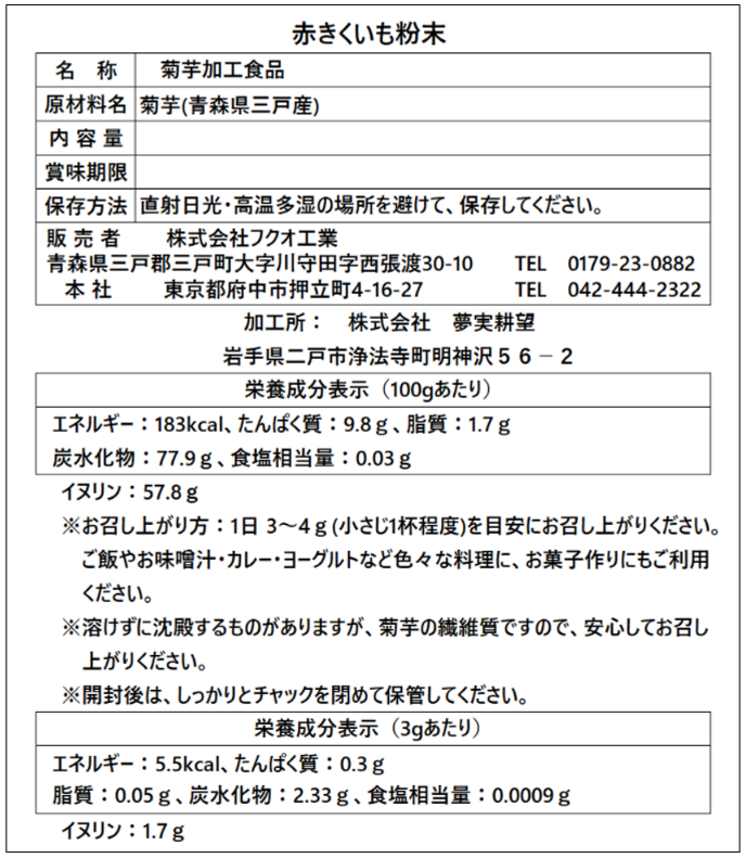 食品表示(商品パッケージ裏面)